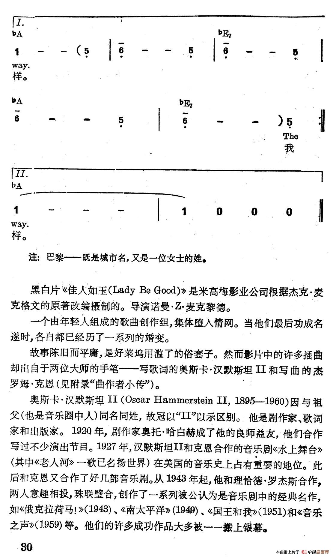 黑白片《佳人如玉》是米高梅影业公司根据杰克·麦克格文的原著改编摄制的。故事陈旧而平庸,是好莱坞用滥了的俗套子。然而影片中的许多插曲却出自于两位大师的手笔——写歌词的奥斯卡·汉默斯坦Ⅱ和写曲的杰罗姆·克恩。
