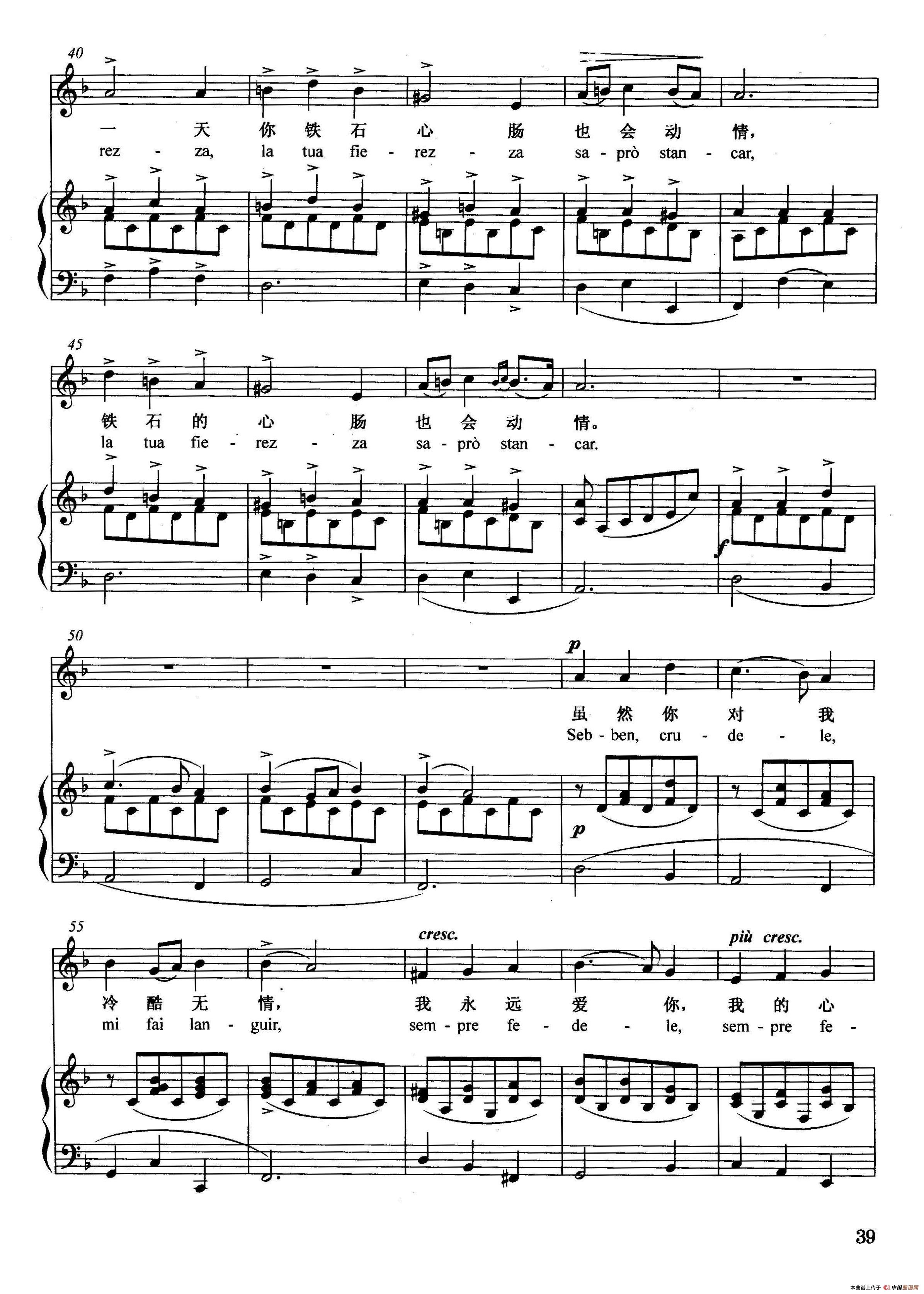 《[意]虽然你冷酷无情(正谱)》文本歌词