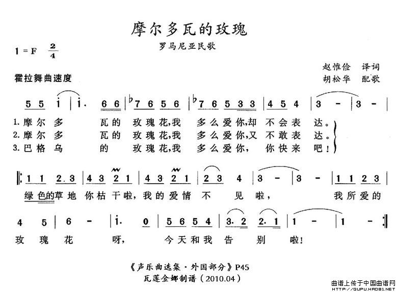 关于《[罗马尼亚]摩尔多瓦的玫瑰》曲谱的评论