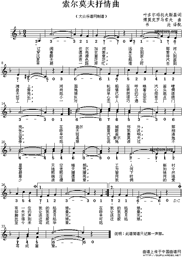 [俄]索尔莫夫抒情曲(线简谱混排版)