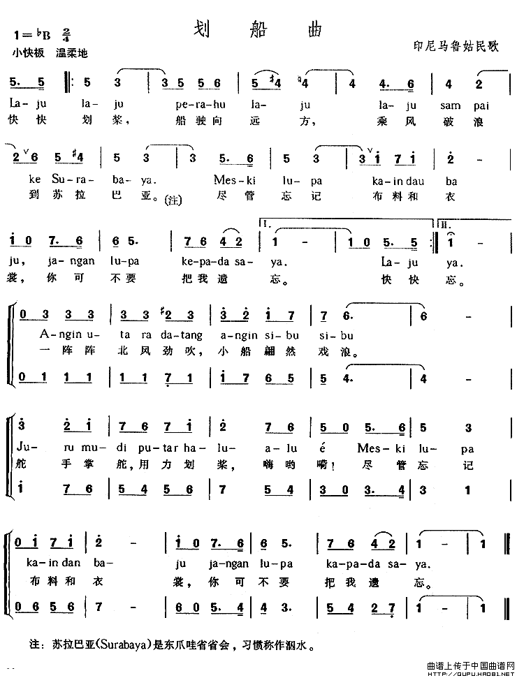 关于《[印尼] 划船曲》曲谱的评论