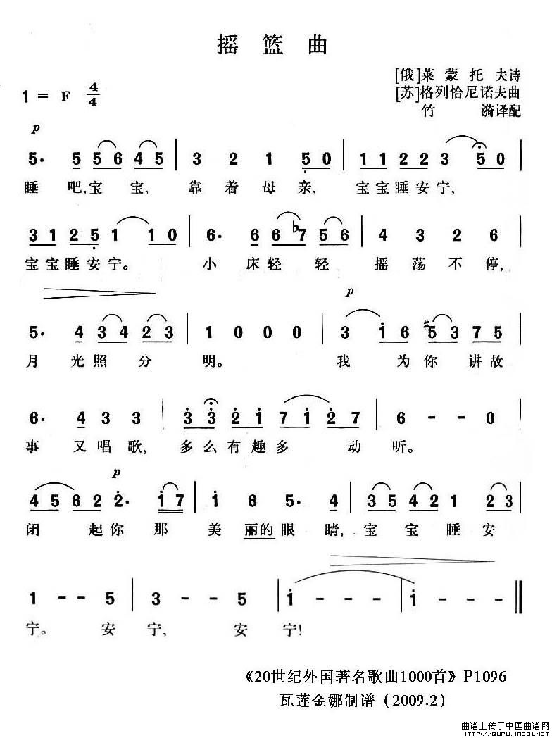[俄]摇篮曲([俄]蒙莱托夫词 [俄]格列恰尼诺夫竹漪曲、竹漪译配版)