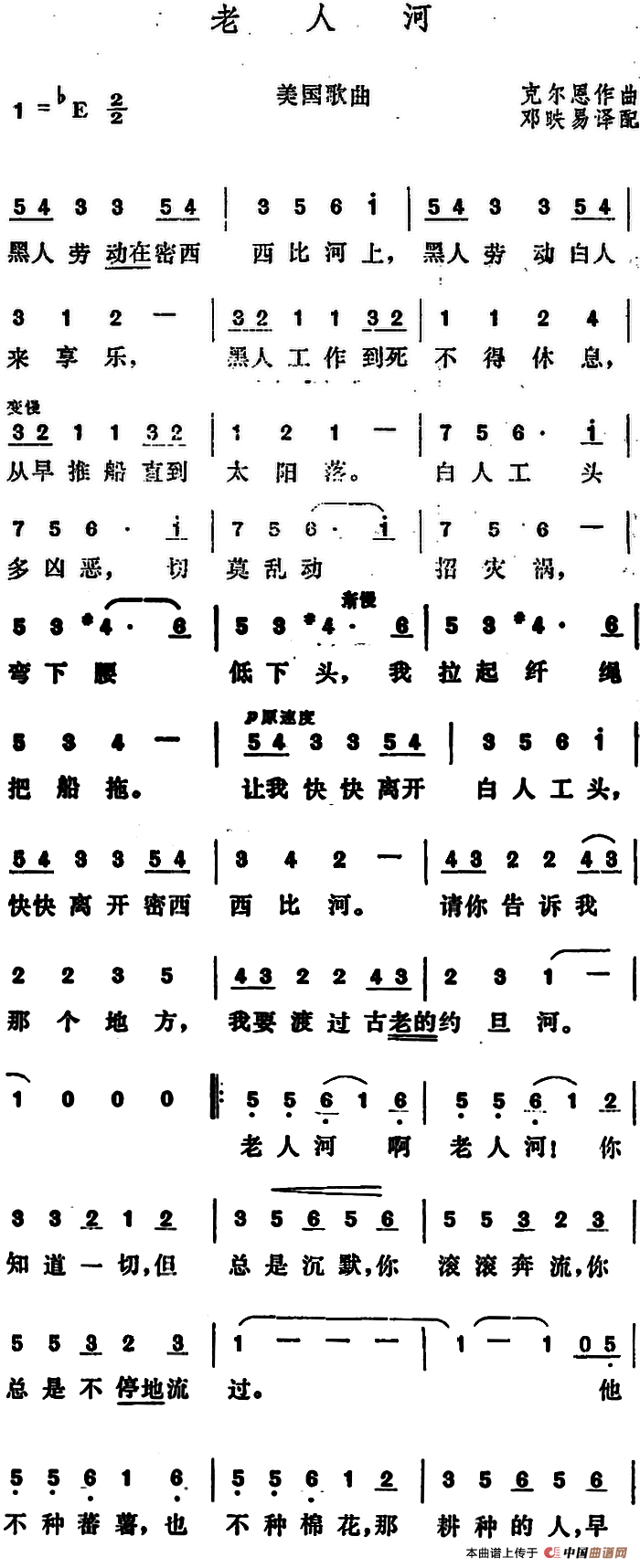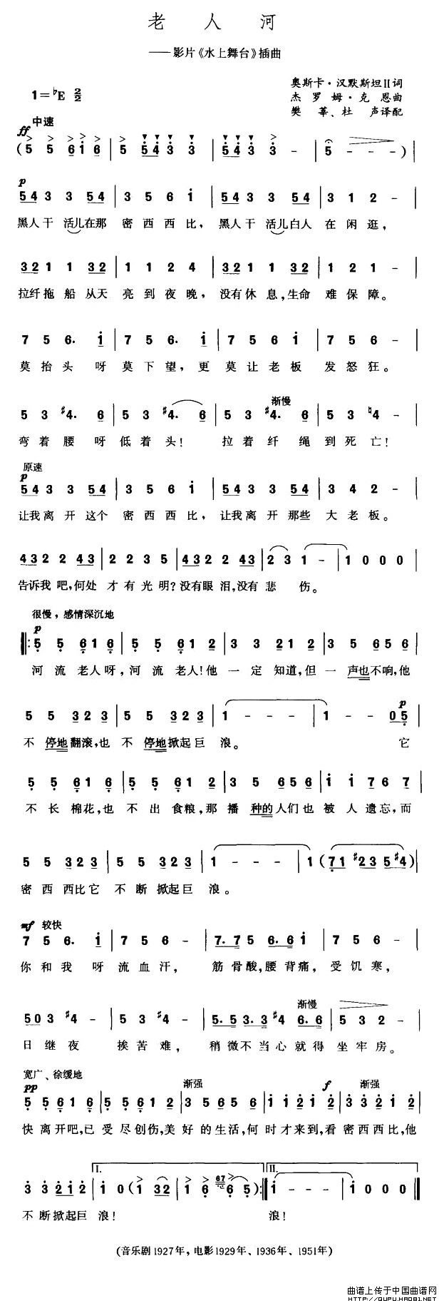 关于《[美]老人河》曲谱的评论
