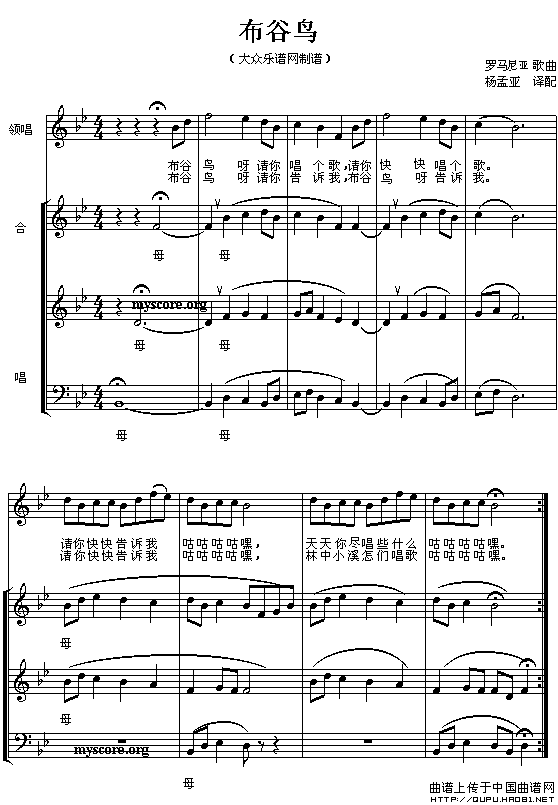 [罗马利亚] 布谷鸟(领唱、混声三部合唱、五线谱)