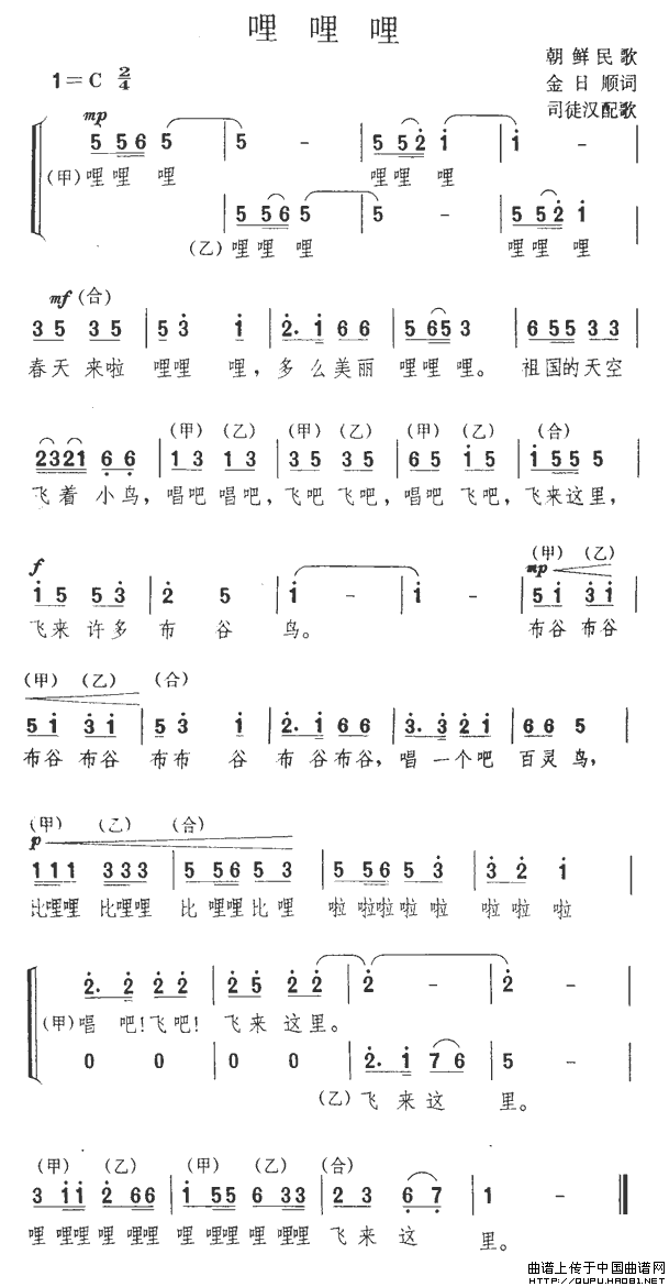 关于《[朝鲜]哩哩哩》曲谱的评论