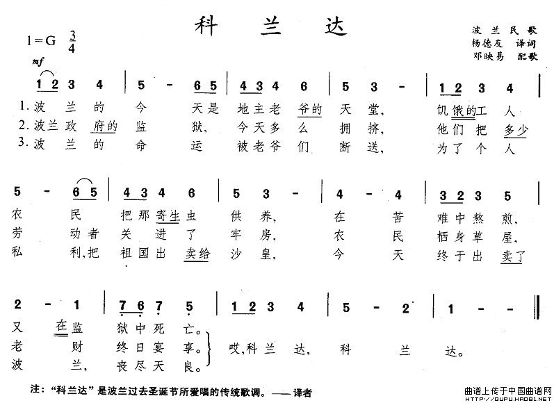 关于《科兰达》曲谱的评论