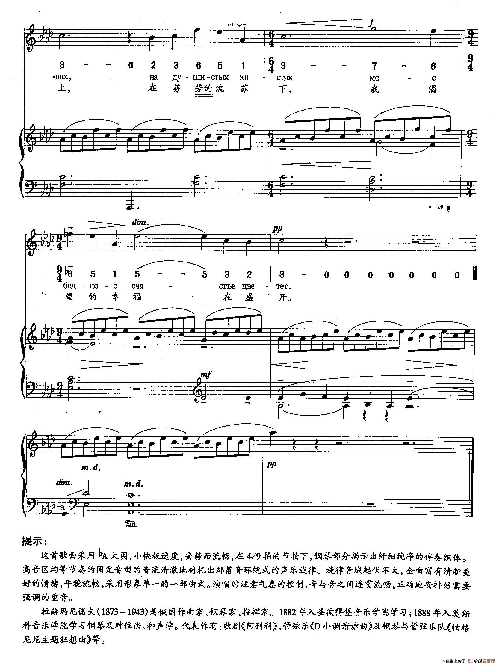 作词:别凯托娃 作曲:拉赫玛尼诺 来源:俄罗斯经典艺术歌曲选-张梅丽译配 上传:瓦莲金娜AA