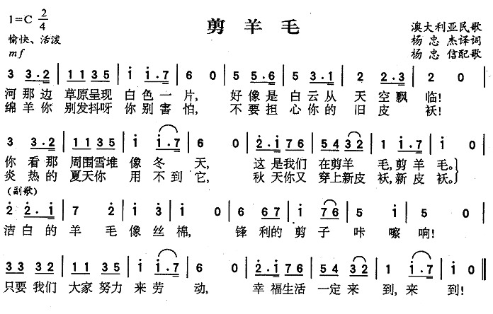 关于《[澳大利亚]剪羊毛》曲谱的评论