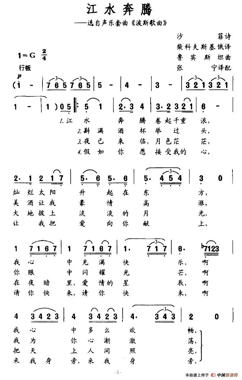 关于《江水奔腾》曲谱的评论