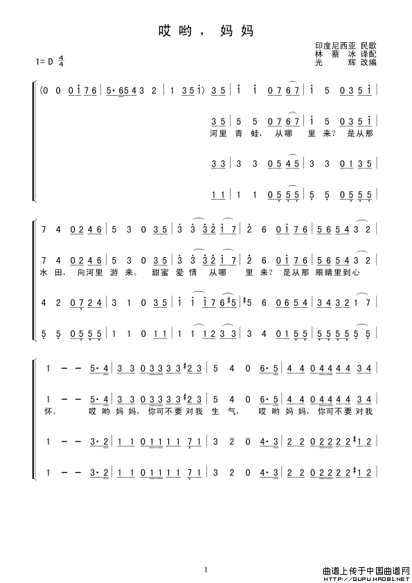 关于《[印尼] 哎哟!妈妈》曲谱的评论