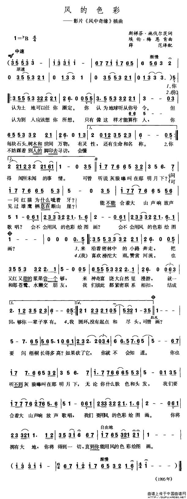 迪斯尼动画片《风中奇缘》讲述一个古老的传说:17世纪初,印第安族的姑娘波卡洪塔斯和英国殖民者约翰·施密斯上尉之间的爱情平息了美洲大陆土著部落和英国移民间的纷争。 这首歌曲获1995年第68届奥斯卡最佳电影歌曲奖,由凡尼莎·威廉斯演唱。