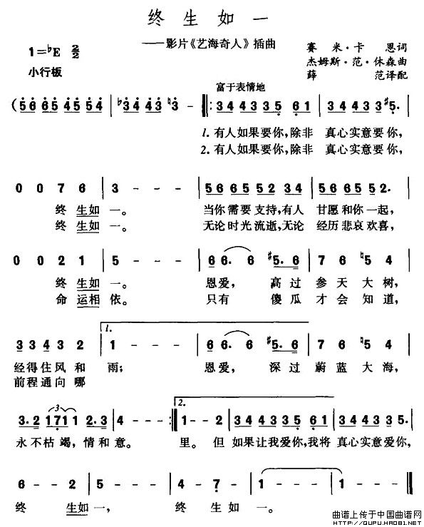 派拉蒙影片公司出品的黑白片《艺海奇人》是根据阿特·柯恩写的传记体小说改编摄制的。导演查尔斯·维多。 《终生如一》是该影片插曲。