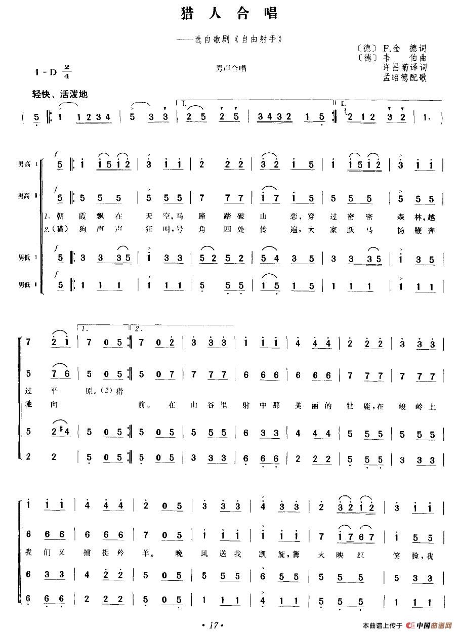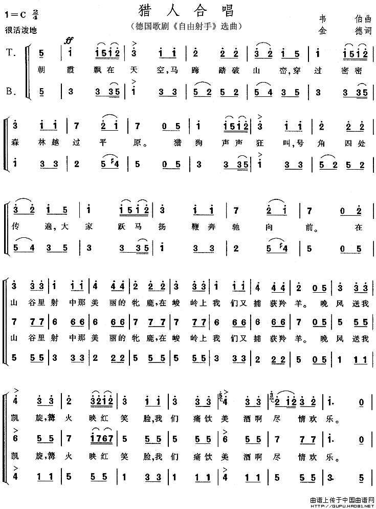 关于《[德]猎人合唱》曲谱的评论