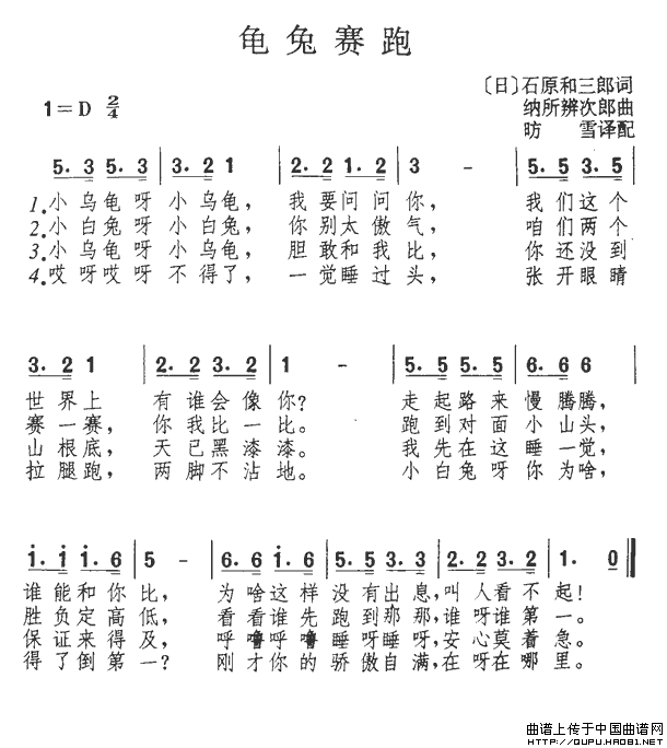 关于《龟兔赛跑》曲谱的评论