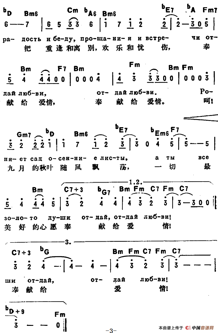 作词:加里宁娜作词、卢双译配 作曲:符拉吉米尔佐夫 来源:中国曲谱网 上传:热爱音乐88