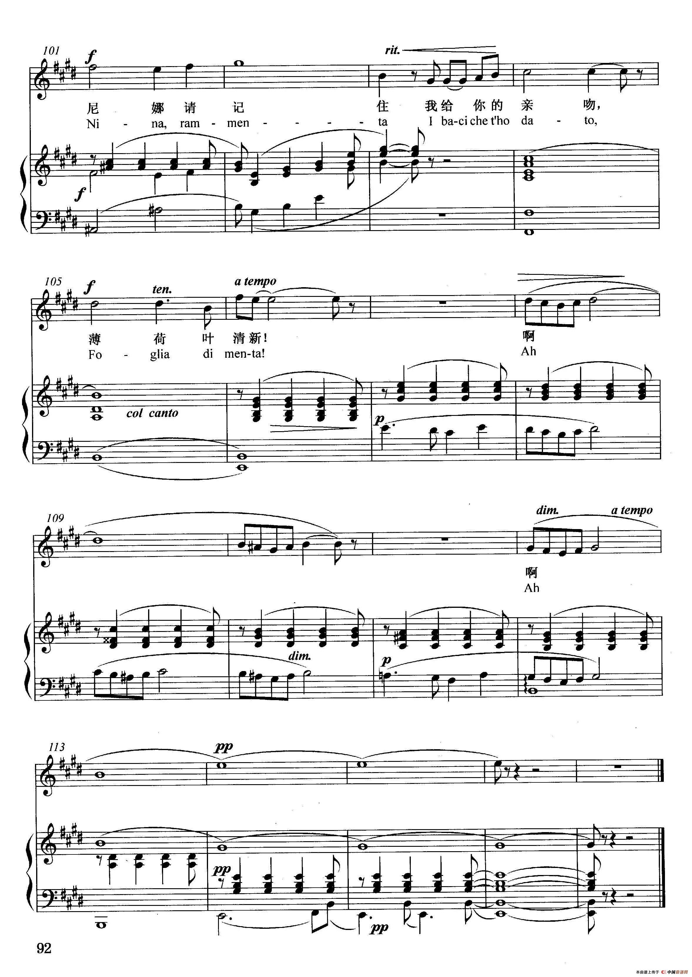 关于《[意]最后的歌(正谱)》曲谱的评论