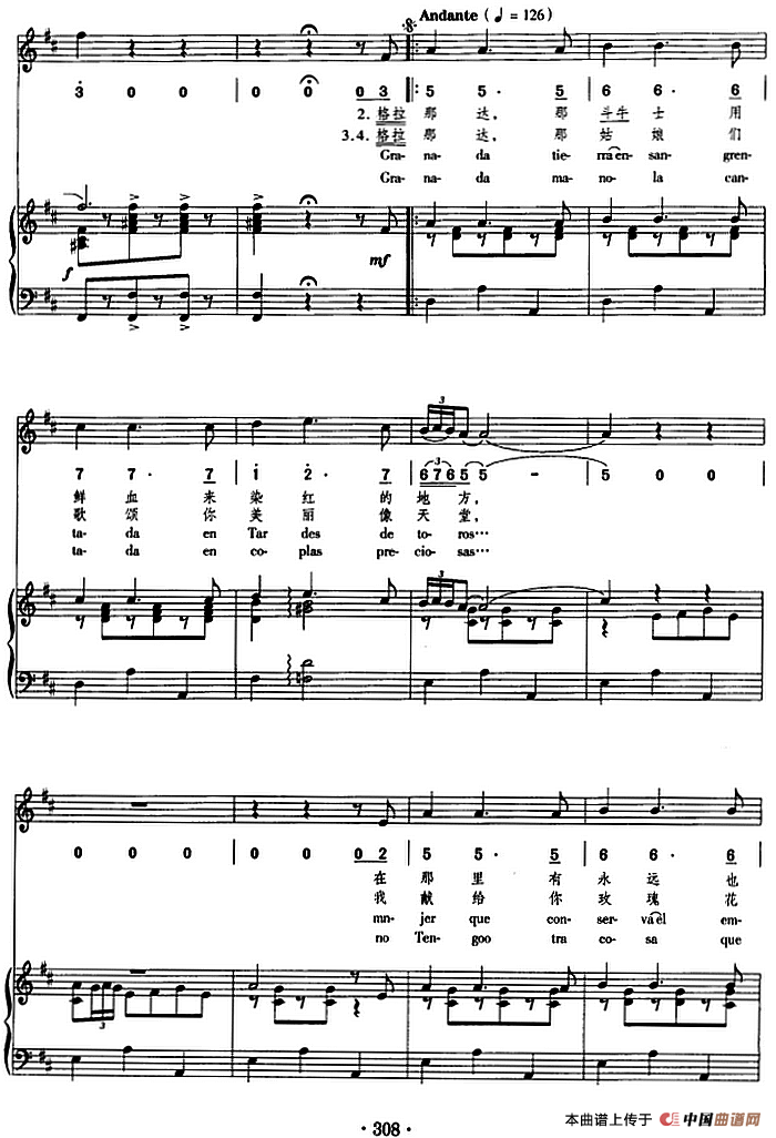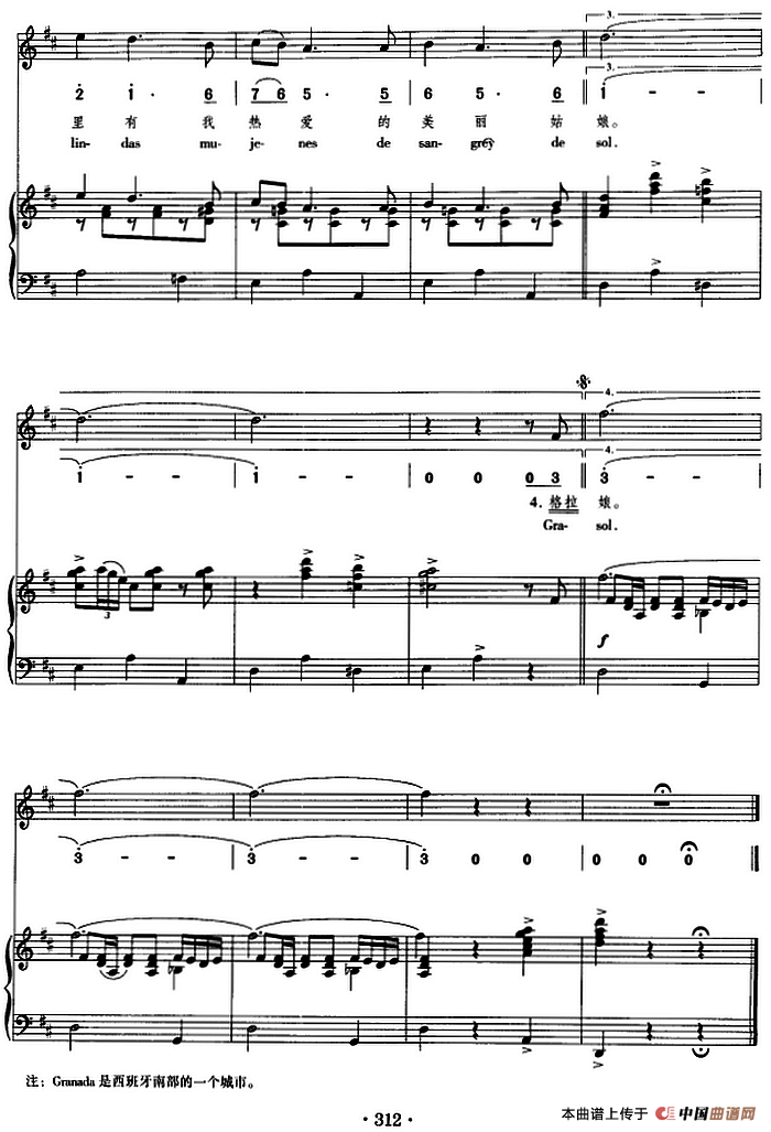 格拉那达(正谱、线简谱、中外文对照版)