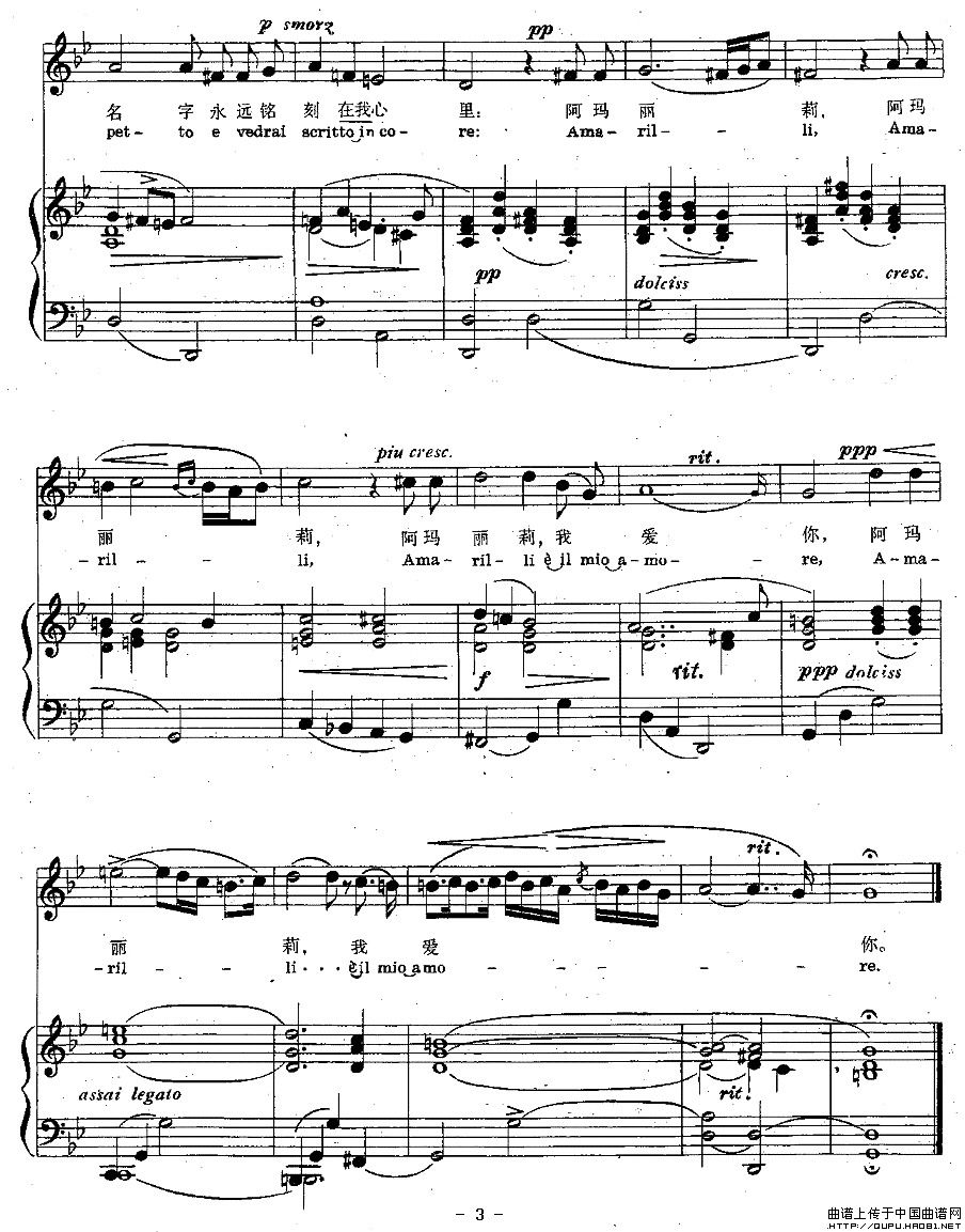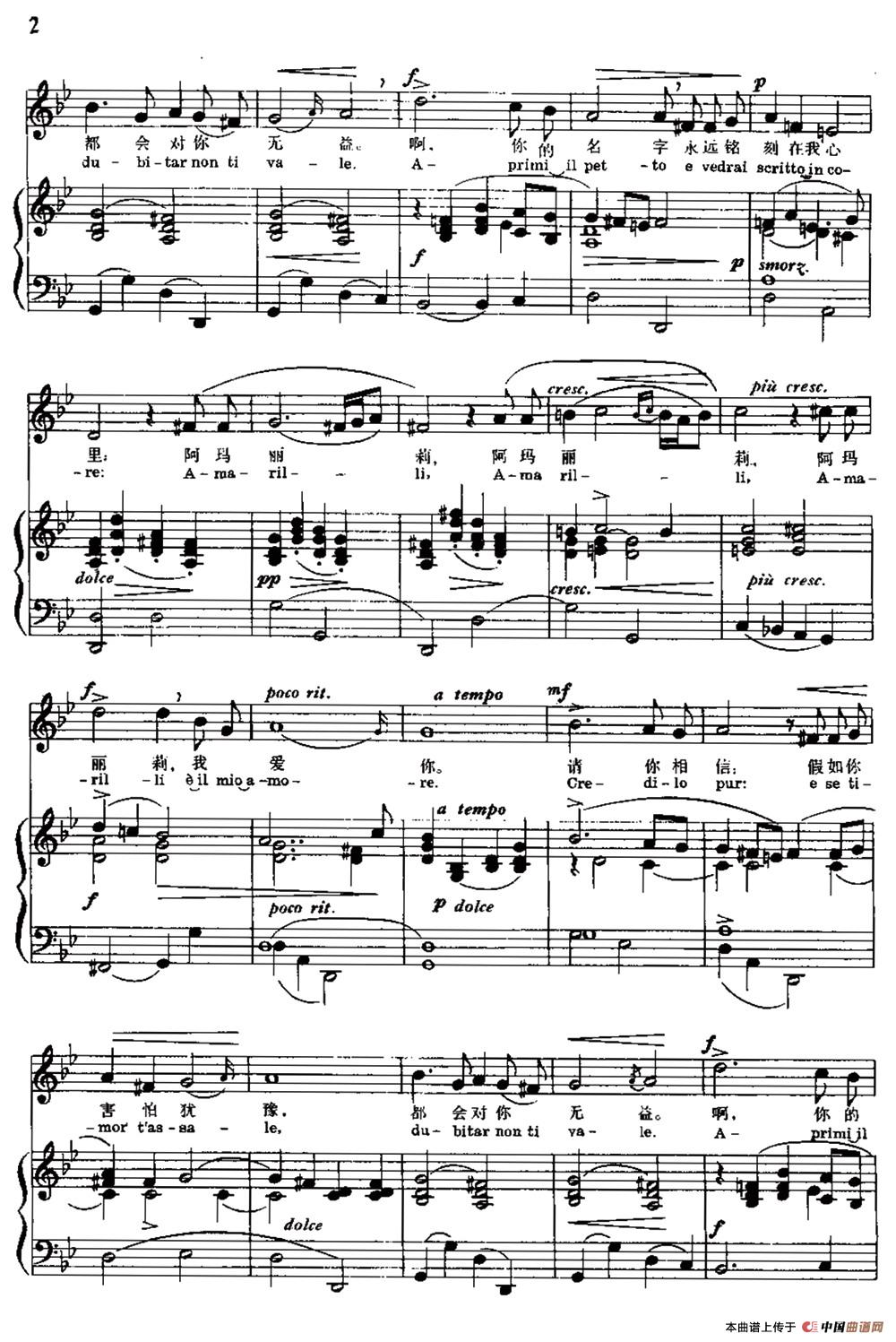 关于《[意] 阿玛丽莉》曲谱的评论
