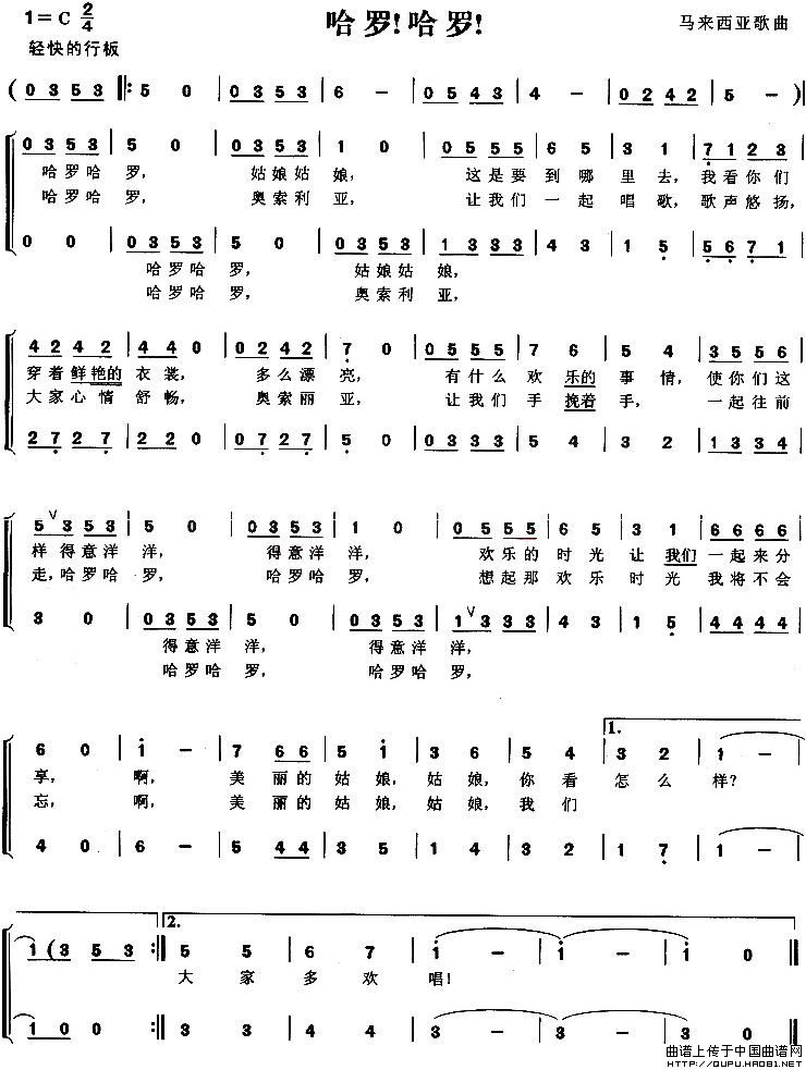 关于《[马来西亚] 哈罗哈罗》曲谱的评论