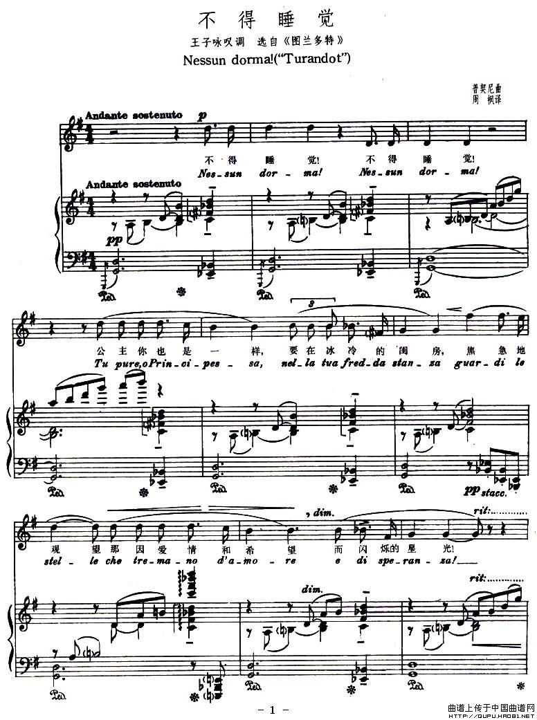 不得睡觉(今夜无人入睡)王子咏叹调 选自《图兰朵)