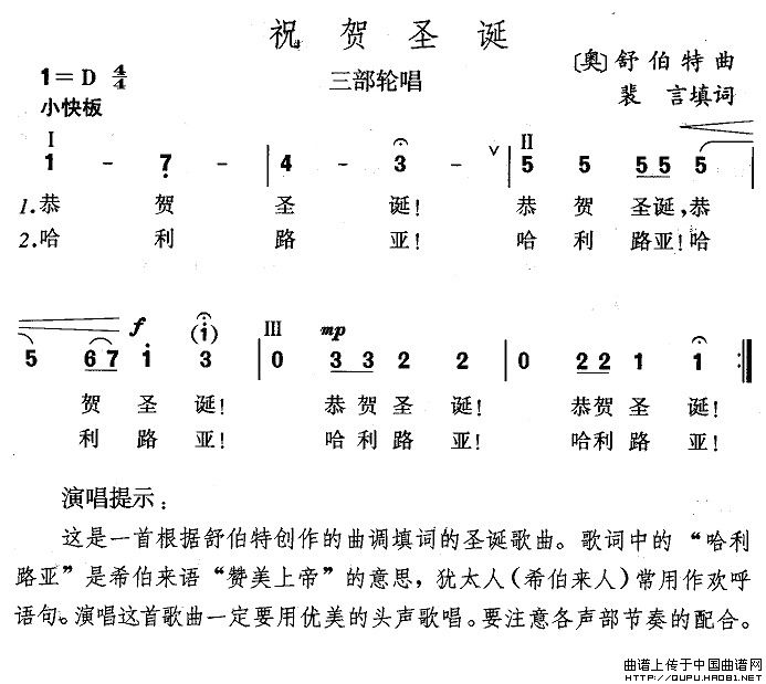 关于《祝贺圣诞》曲谱的评论