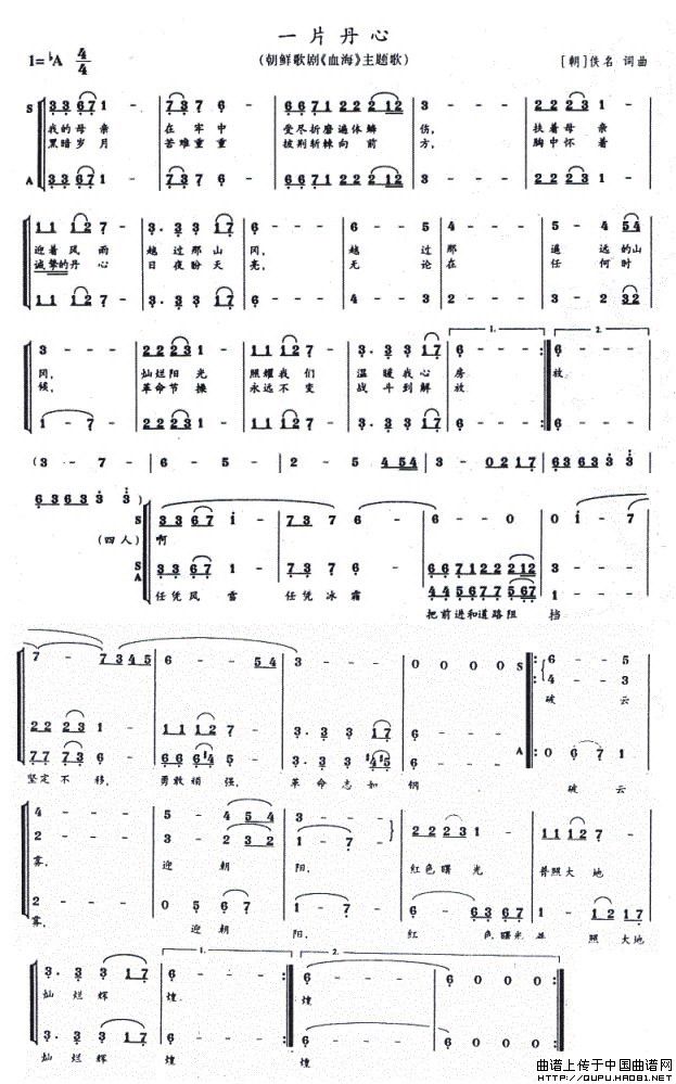 关于《 [朝鲜]一片丹心》曲谱的评论