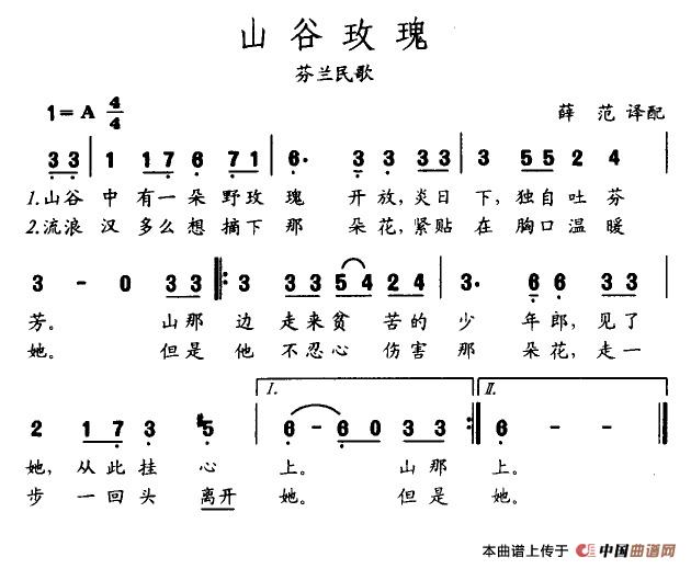 关于《山谷玫瑰》曲谱的评论