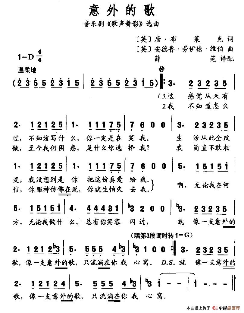 关于《意外的歌》曲谱的评论