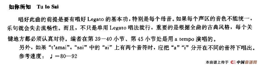 关于《[意]Tu lo sai》曲谱的评论