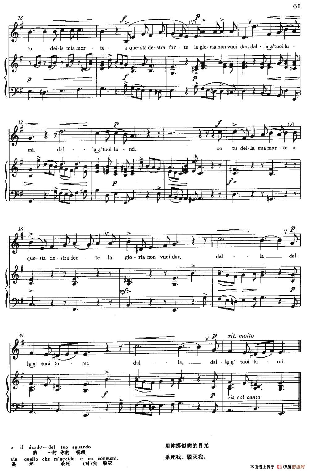 选自《意大利古典声乐曲集·低音用》,歌剧《十人团的没落》咏叹调。