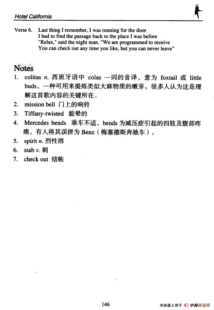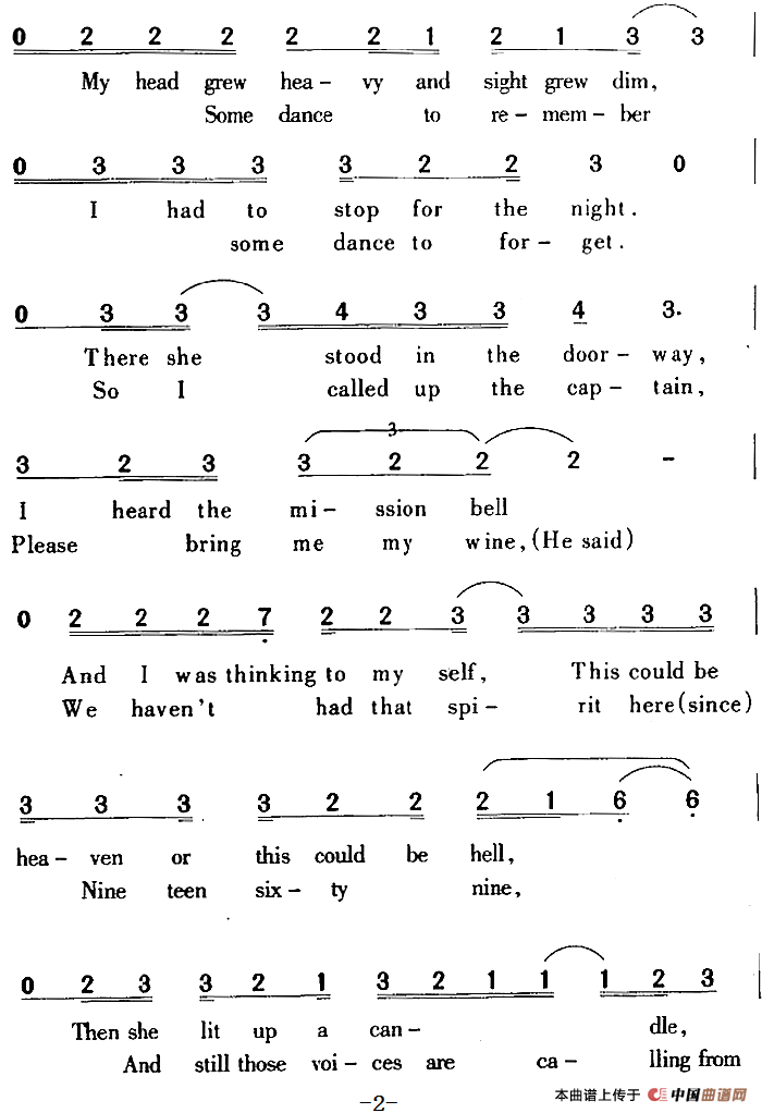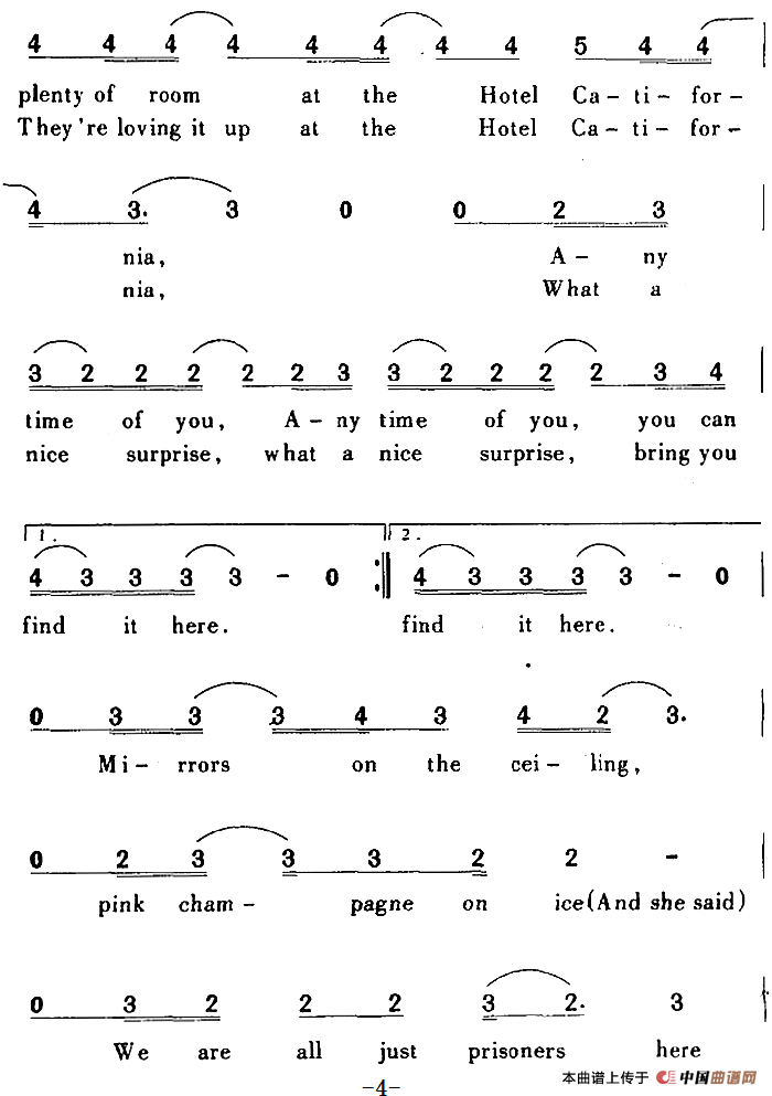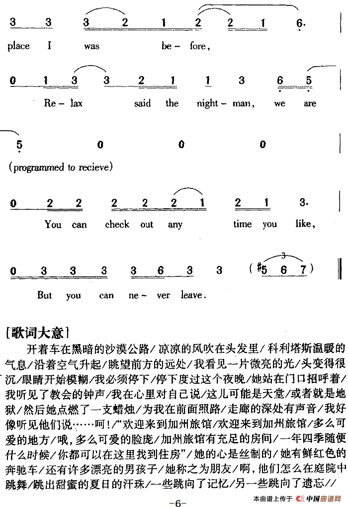 关于《Hotel California》曲谱的评论