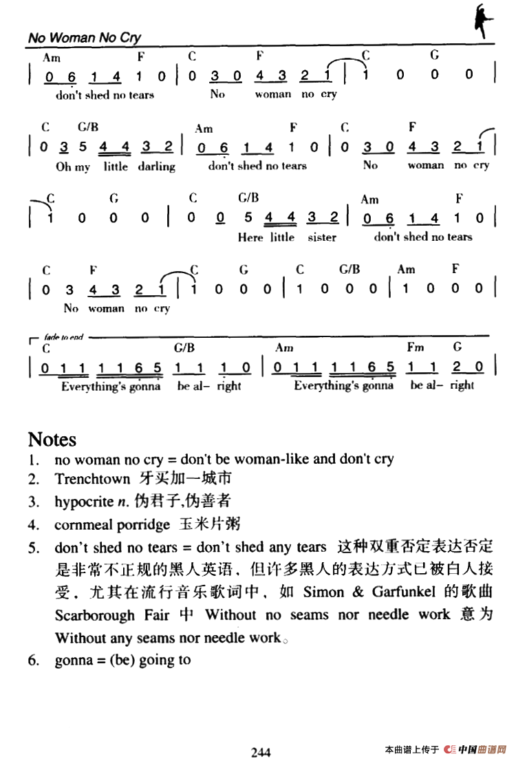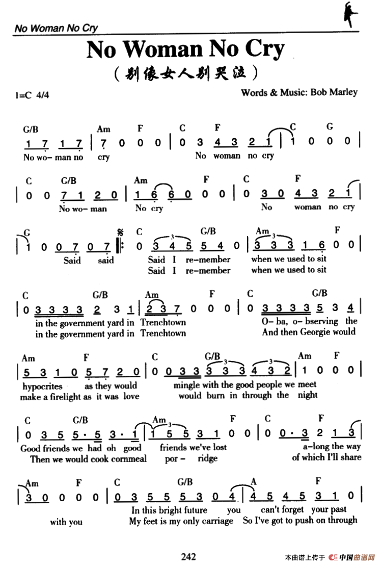 关于《No Woman No Cry》曲谱的评论