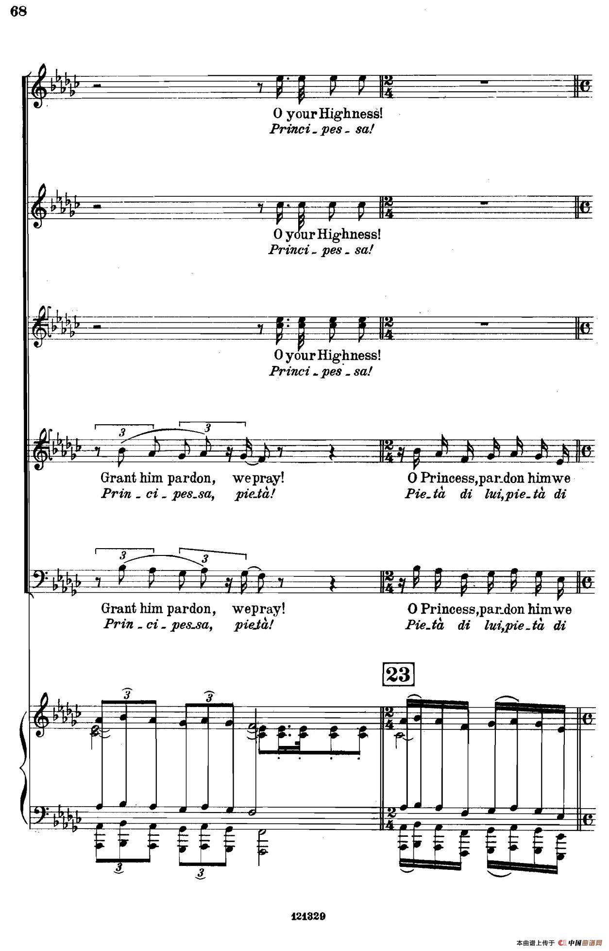 《图兰朵公主》三幕五场歌剧(英意双语)全谱(钢琴伴奏谱 P63——74)