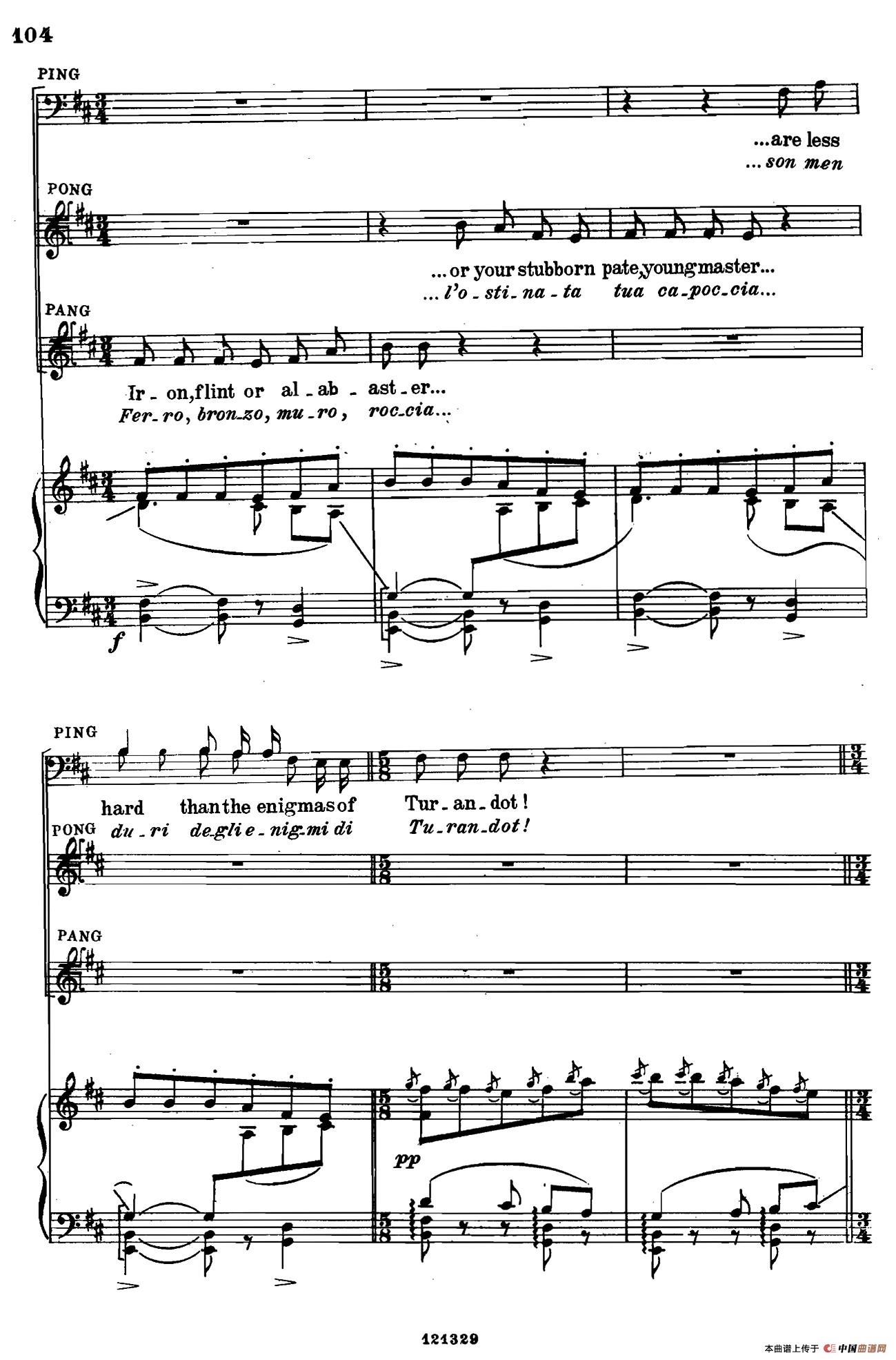 《图兰朵公主》三幕五场歌剧(英意双语)全谱(钢琴伴奏谱 P101——110)