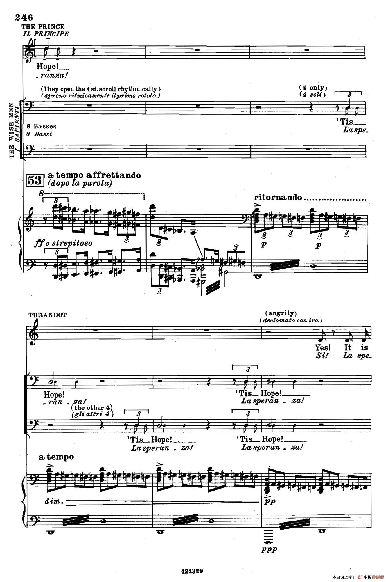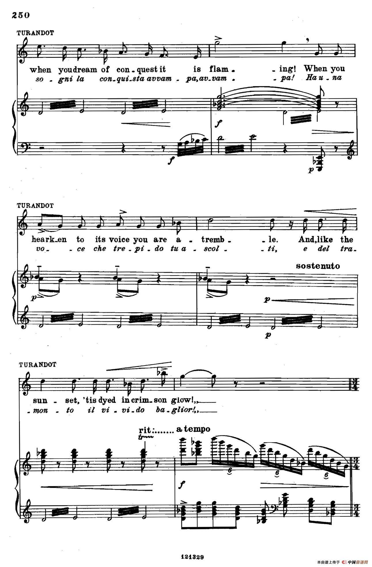 《图兰朵公主》三幕五场歌剧(英意双语)全谱(钢琴伴奏谱 P251——263)