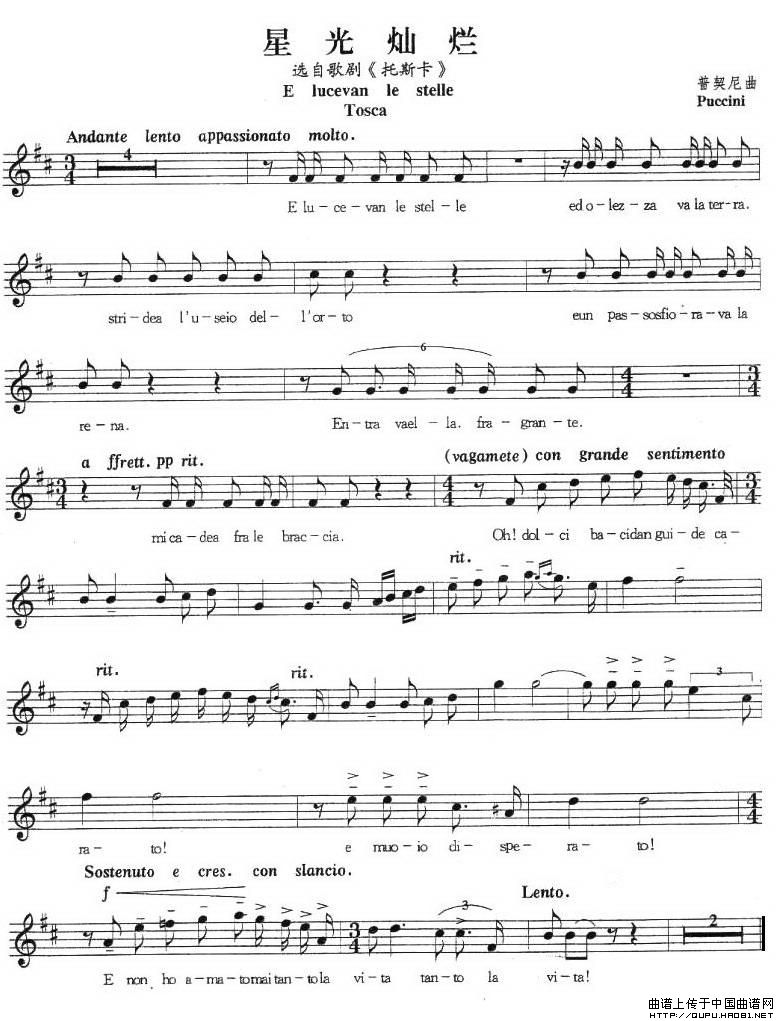 [意]星光灿烂(选自歌剧《托斯卡》、五线谱 )