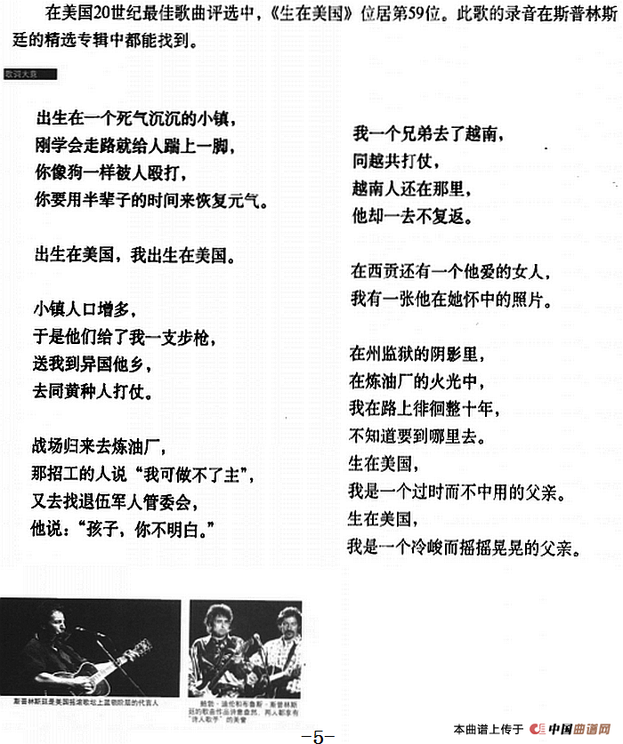 作词:布鲁斯·斯普林斯廷 作曲:布鲁斯·斯普林斯廷 来源:中国曲谱网 上传:热爱音乐88