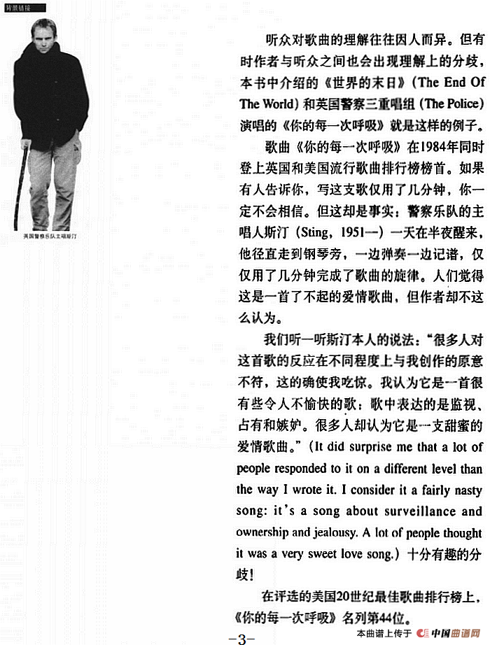 作词:斯汀 作曲:斯汀 来源:中国曲谱网 上传:热爱音乐88