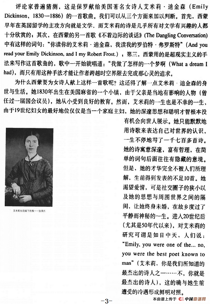 关于《致艾米莉,无论我在何时能找到她》曲谱的评论