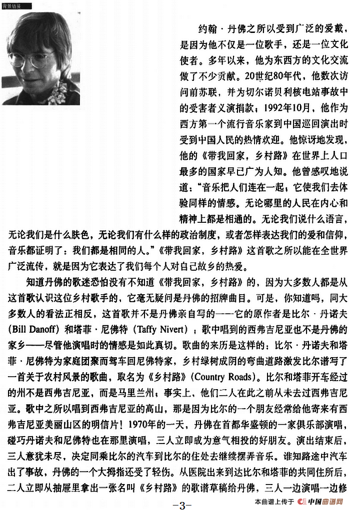 作词:比尔·丹诺夫、塔菲·尼佛特、约翰·丹佛 作曲:比尔·丹诺夫、塔菲·尼佛特、约翰·丹佛 来源:中国曲谱网 上传:热爱音乐88