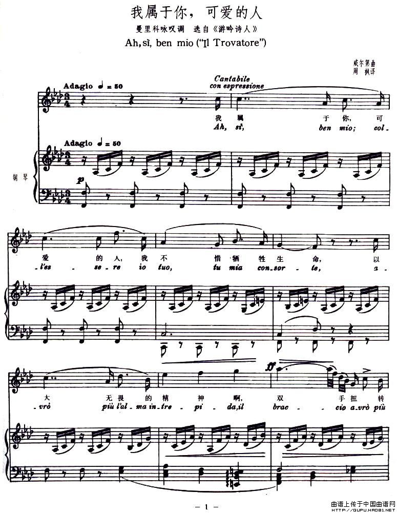 选自《游吟诗人》Ah,si, ben mio(“I1 Trovatore”)