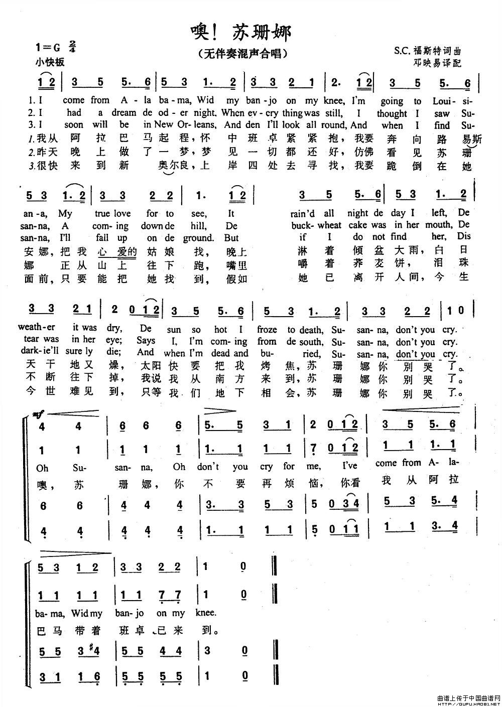 噢!苏珊娜(中英文对照、无伴奏混声合唱)