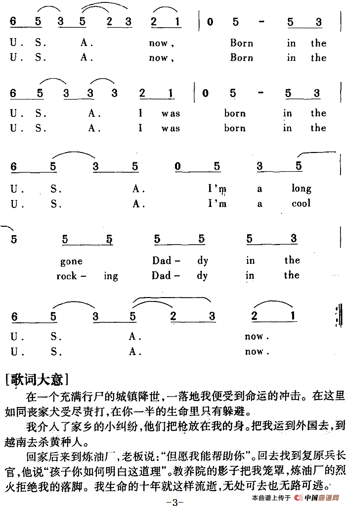 作曲:布鲁斯·斯普林斯汀 来源:中国曲谱网 上传:热爱音乐88