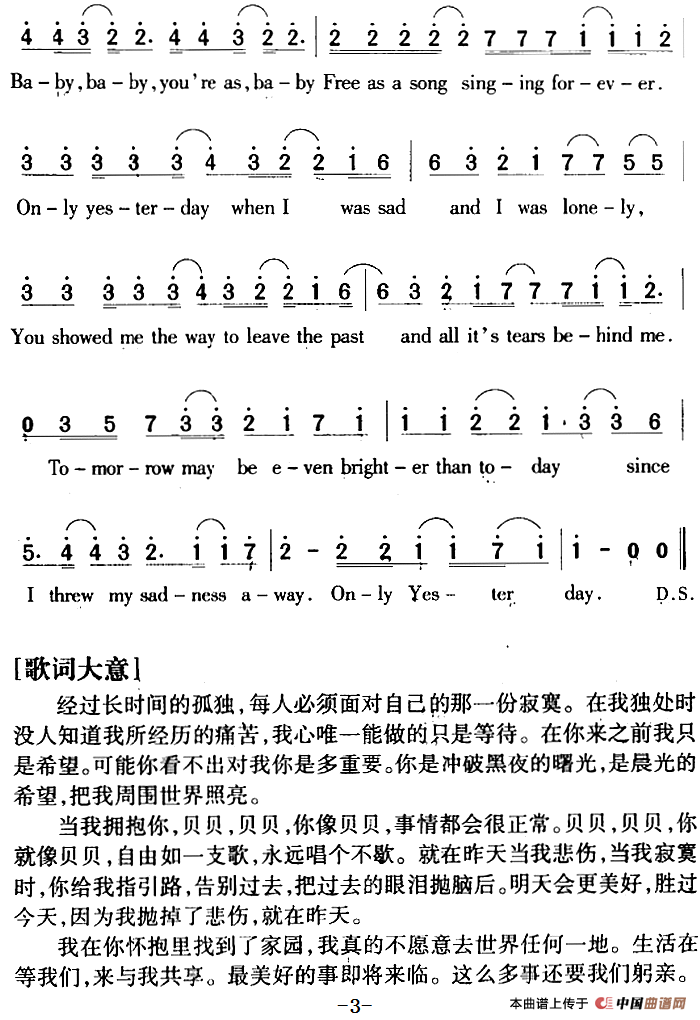 关于《Only Yesterday 昨日恋情》曲谱的评论