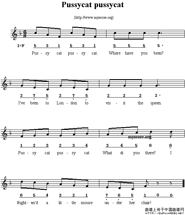 Pussycat pussycat(线简谱混排版、英文儿歌)
