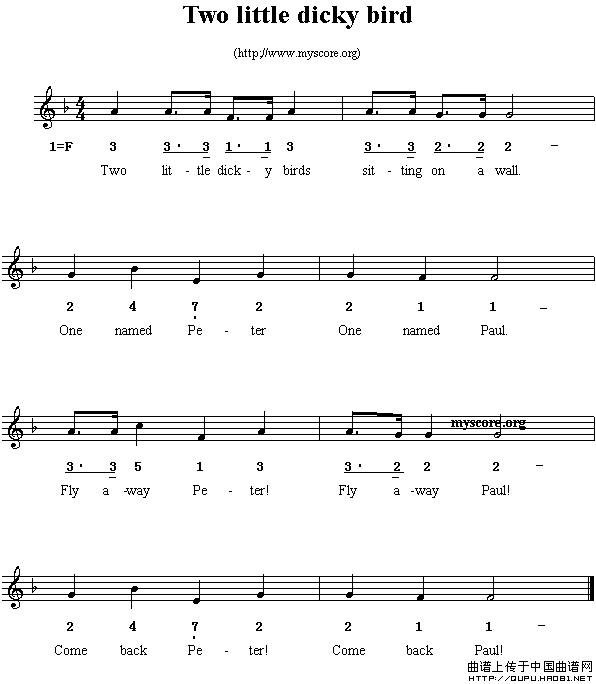 Two little dicky birds(线简谱混排版、英文儿歌)
