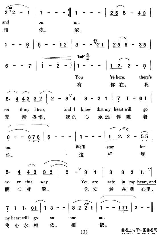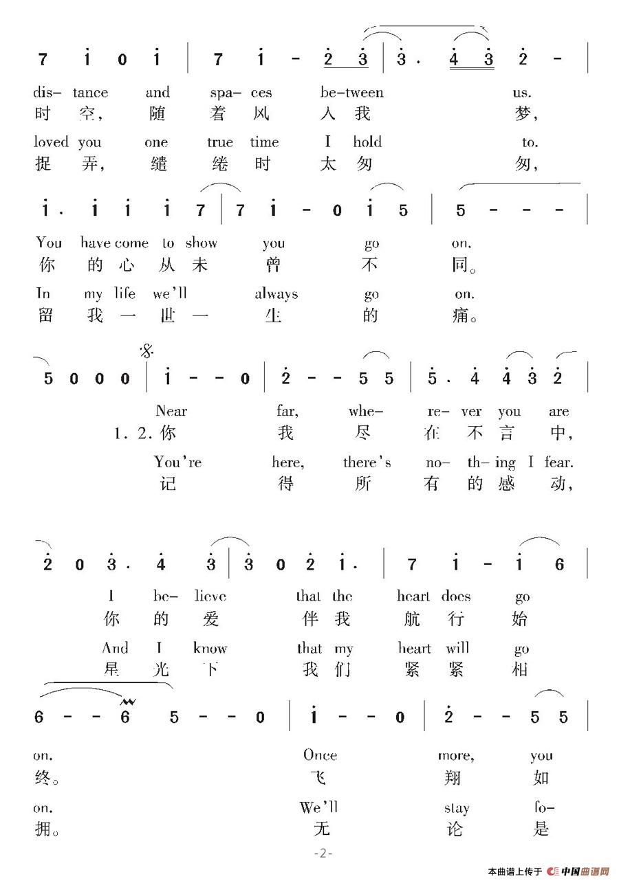 我心永恒(泰坦尼克号主题曲)有无不带英文,仅有中文歌词和简谱的文本。这样可便于学唱和节省纸页。