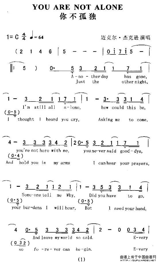 关于《YOU ARE NOT ALONE》曲谱的评论