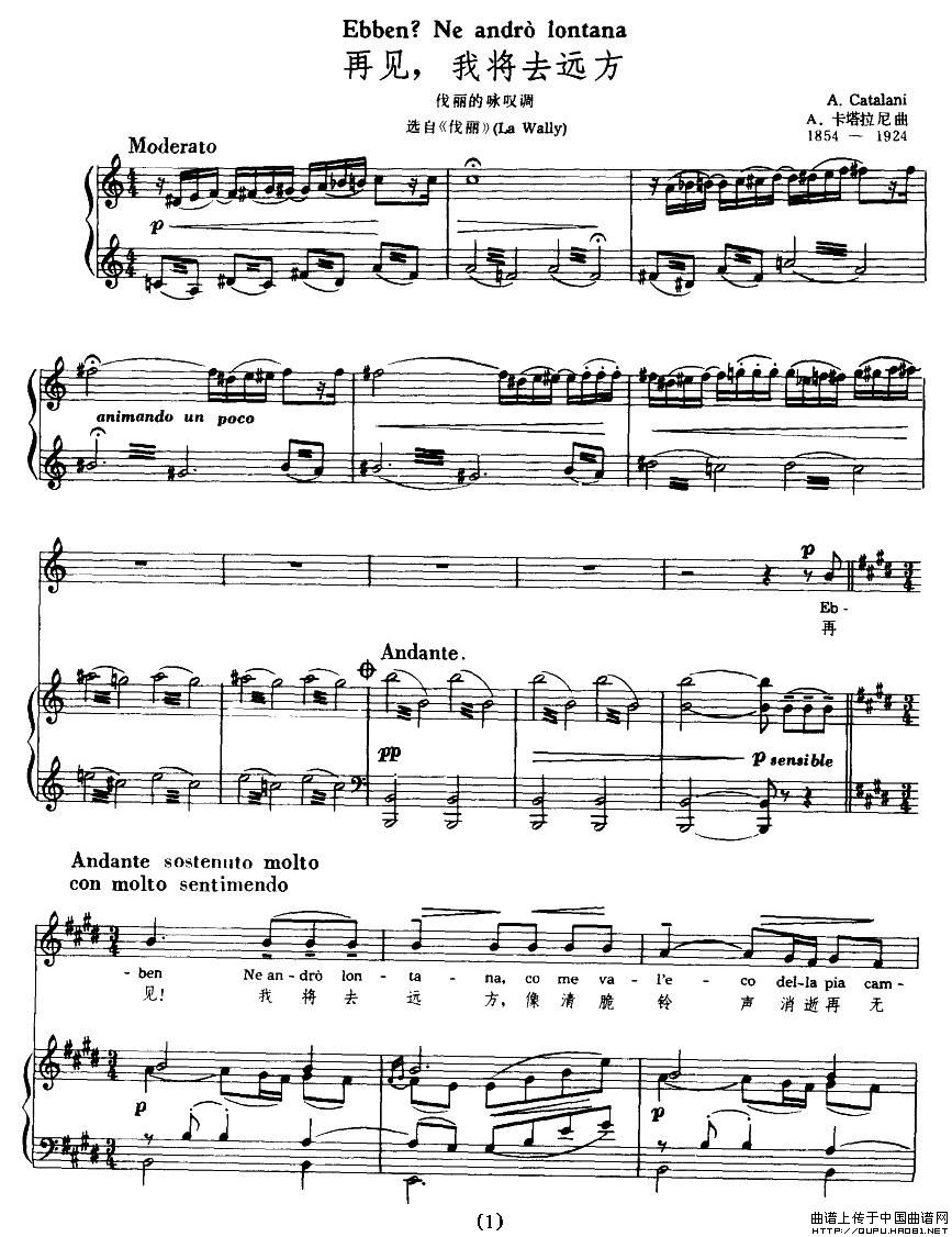 再见,我将去远方(歌剧《伐丽》选曲)(中外文对照、正谱)