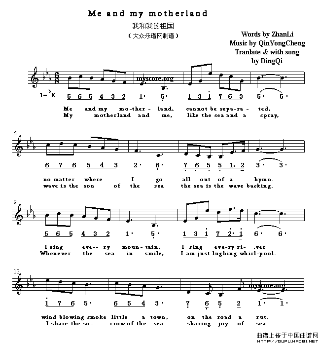 My motherland and me(我和我的祖国)(英译中文歌曲、线简谱混排版)